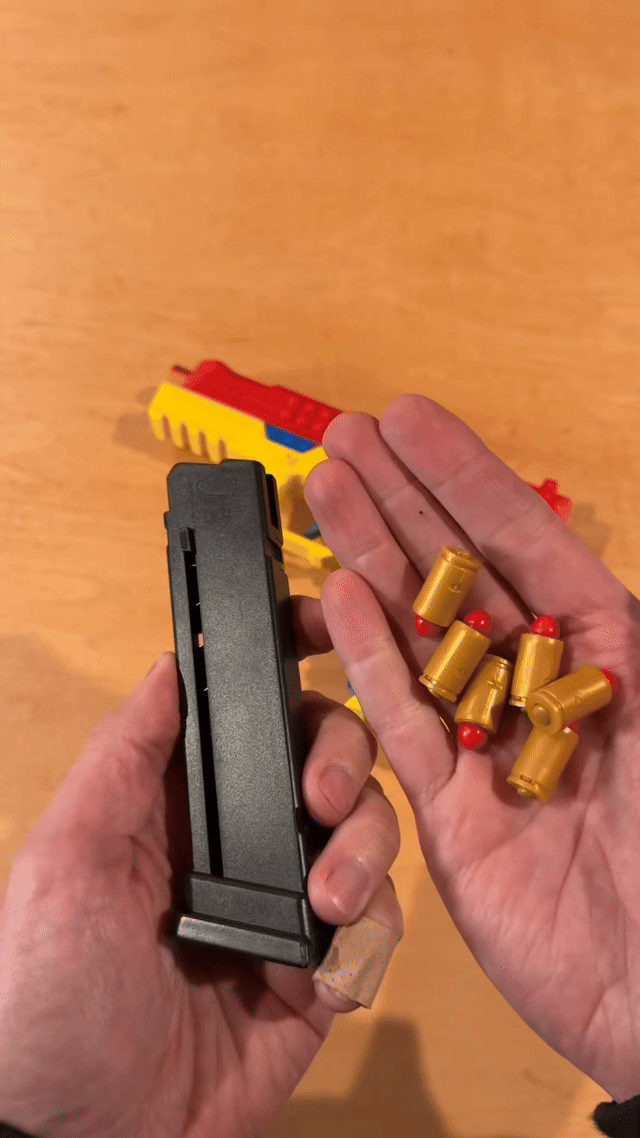 Each casing contains a mini spring that propels the projectile—rack, load, and fire with satisfying mechanical clicks. Range up to ~25 ft* with smooth mag swaps for nonstop play. Every shot feels crisp and powerful, thanks to a real metal barrel and precision-built internal spring system.