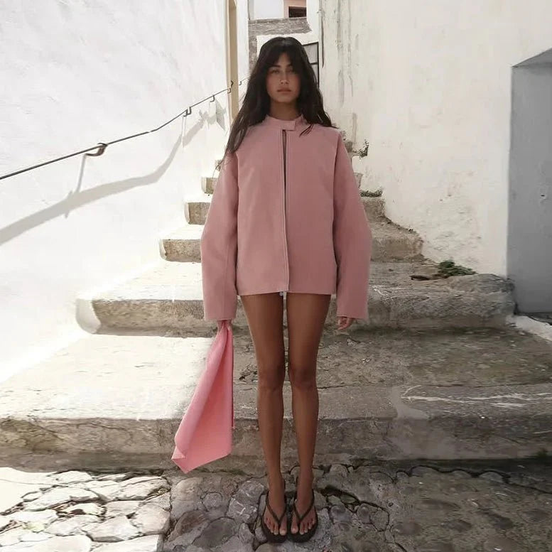 This chic Queenie Stand Collar Suede Jacket is designed for a loose fit, providing comfort and style for any occasion. Perfect for layering, it features long sleeves and a medium thickness, making it an ideal choice for transitional weather.