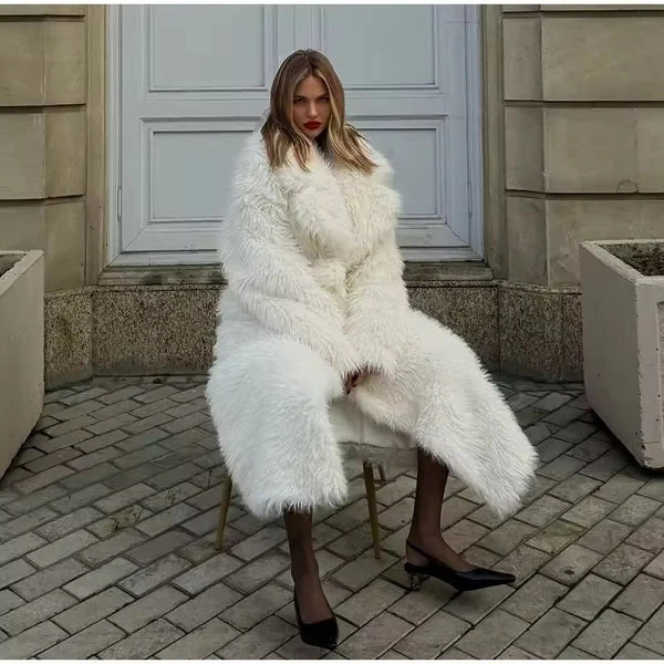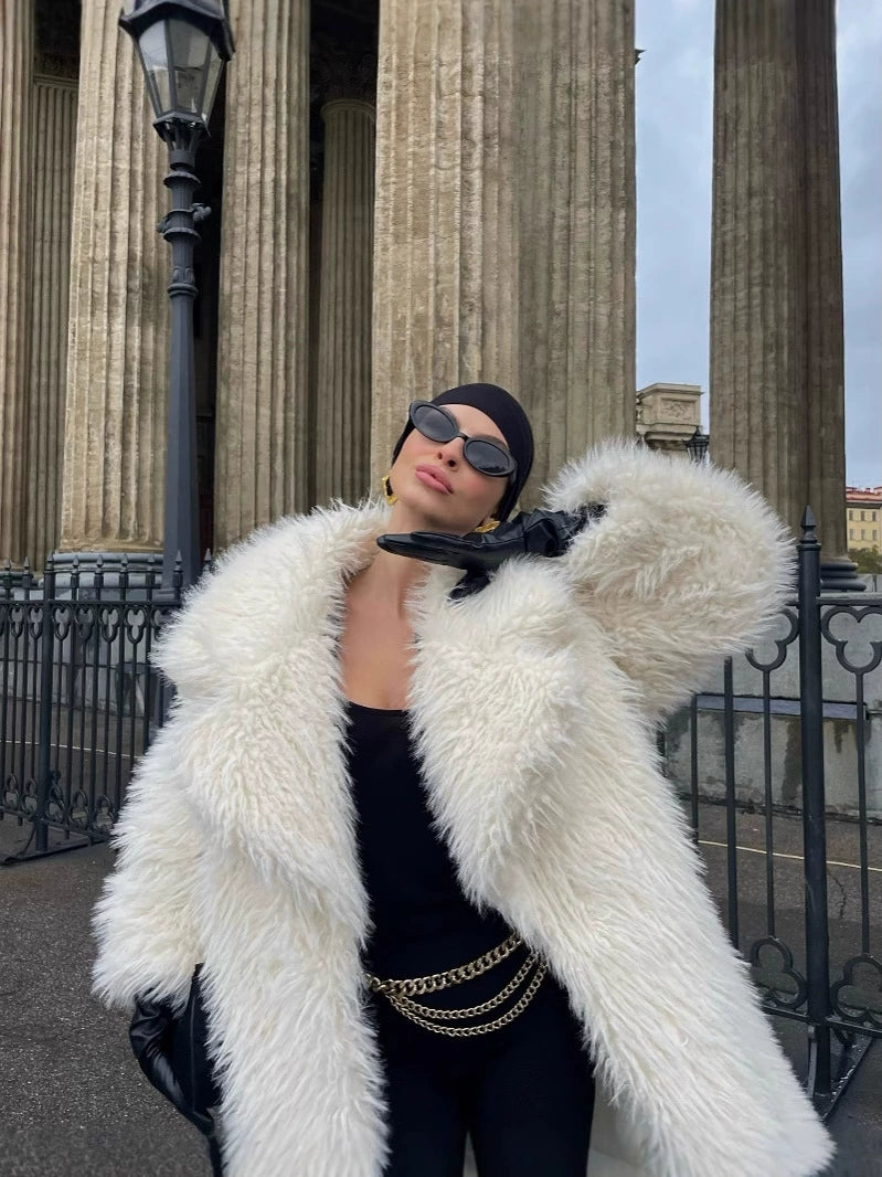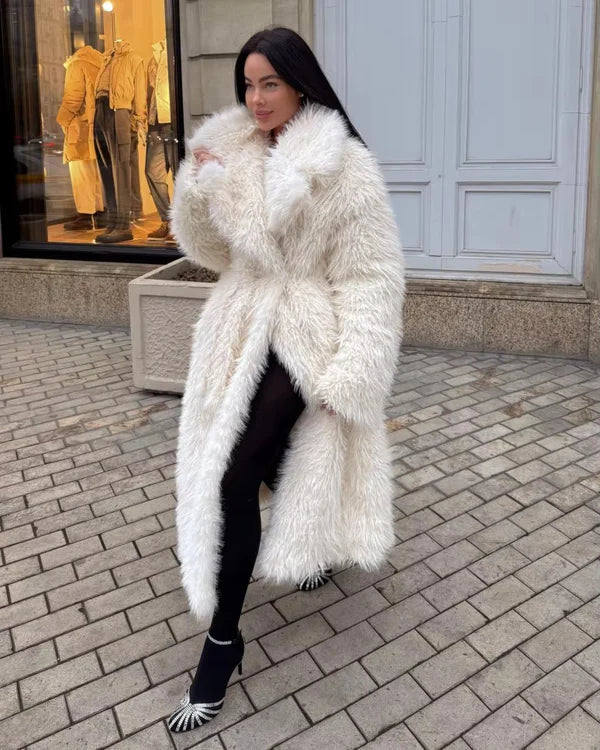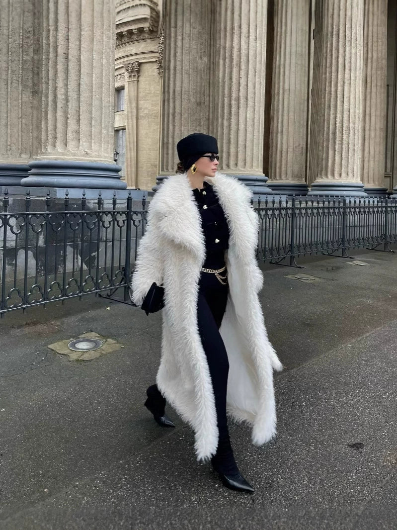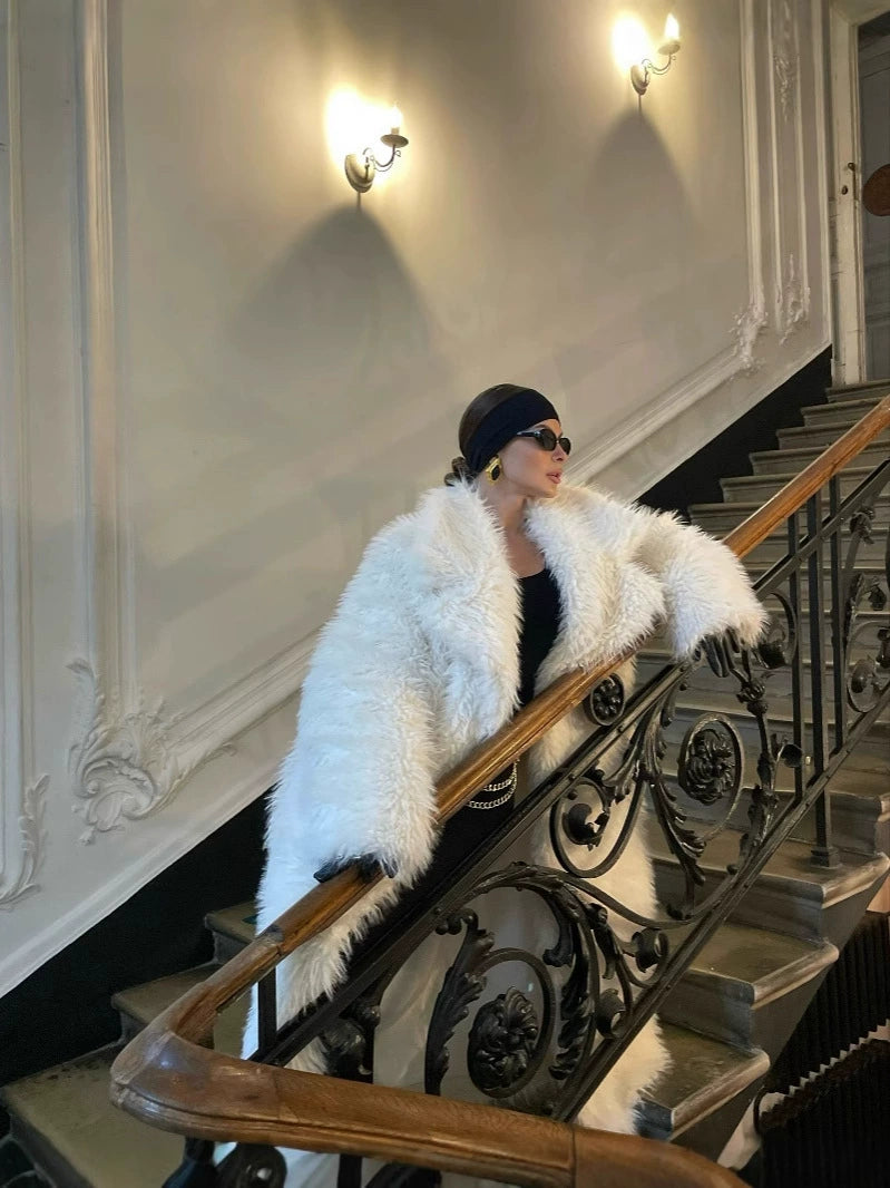 Capture the essence of a cinematic winter in the Protagonist Long Plush Coat. Designed for the woman who treats the city sidewalk as her personal runway, this piece is inspired by those unscripted, "candid" moments